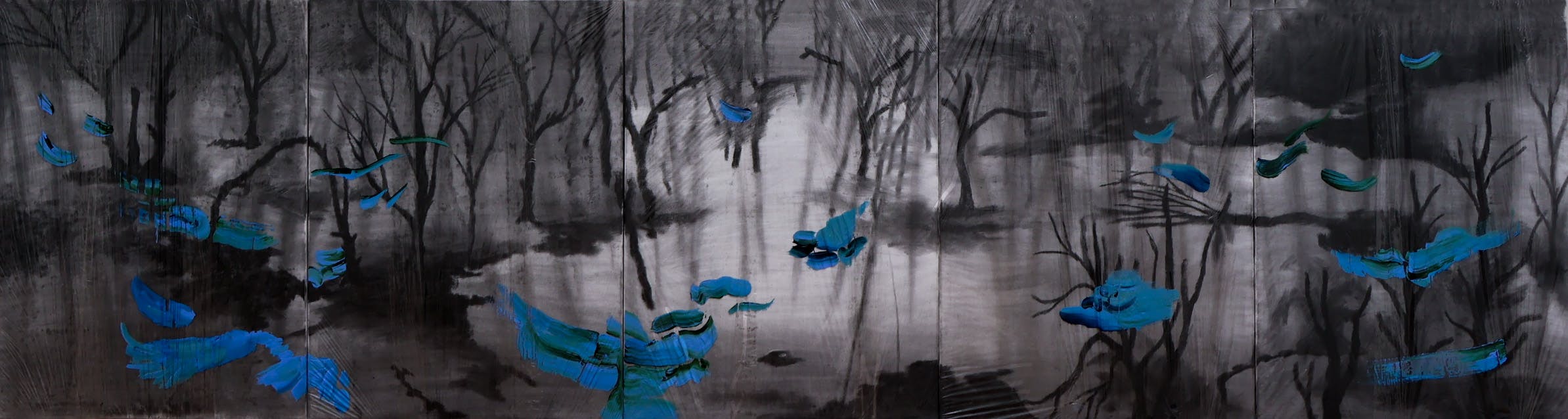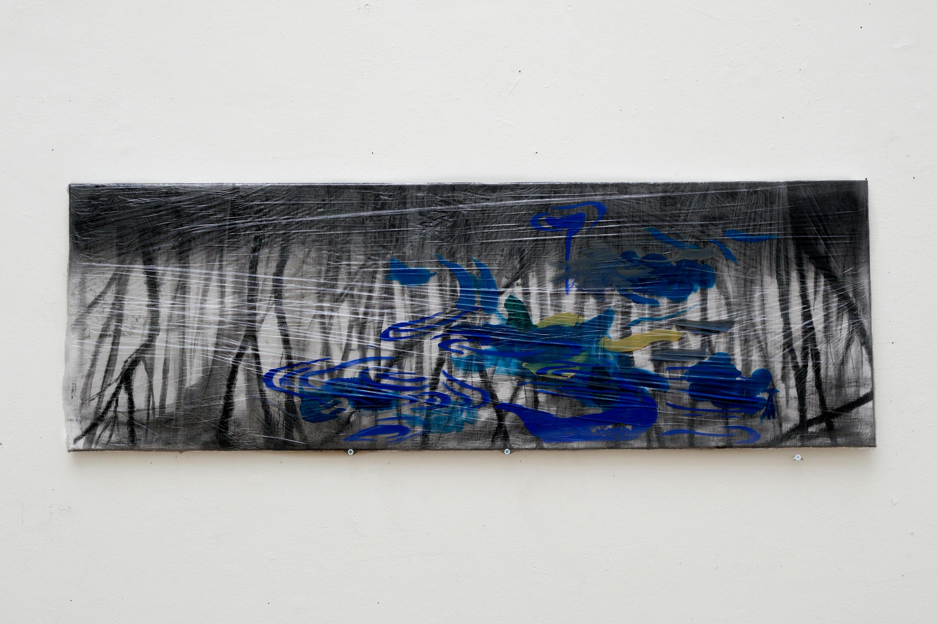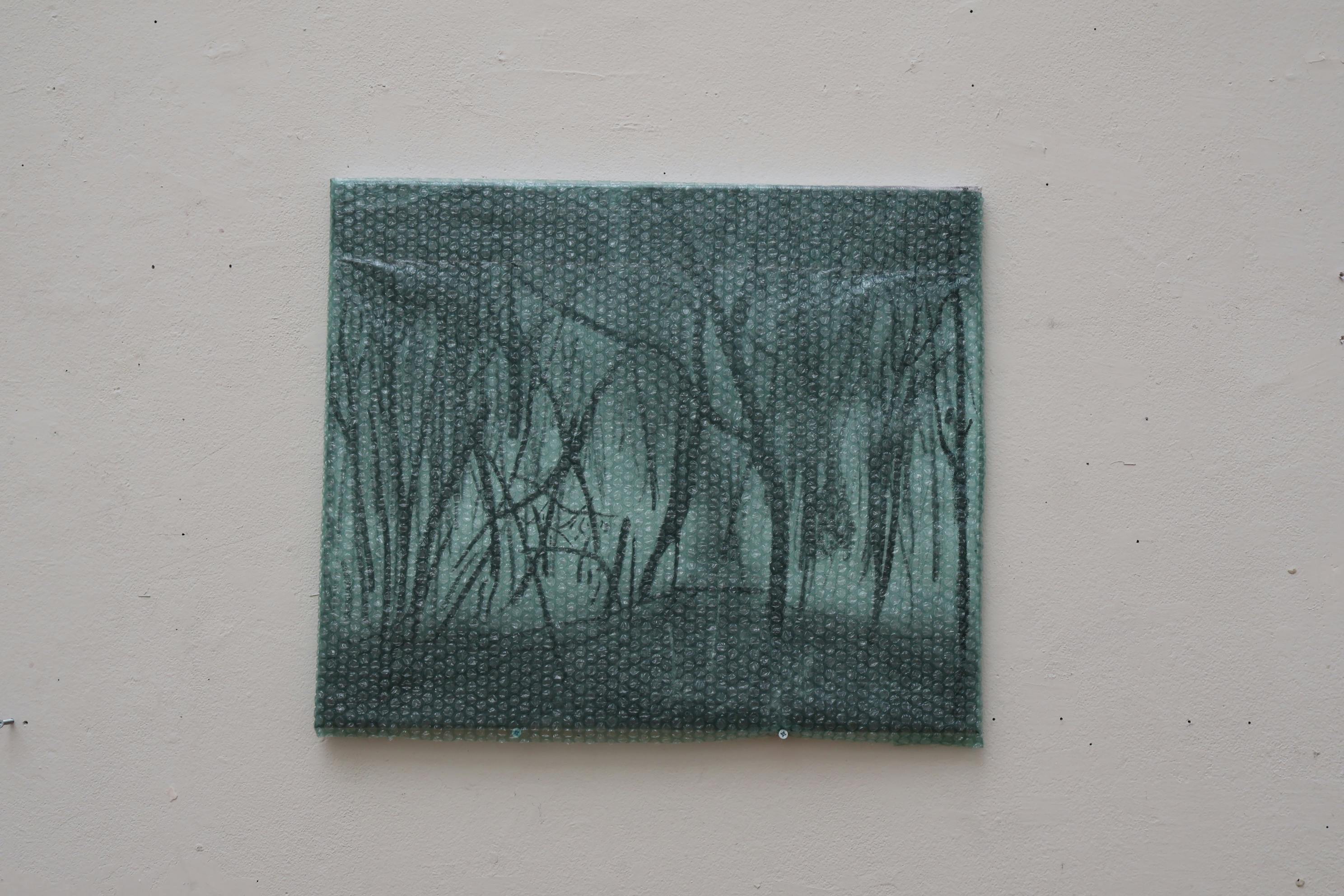 Bringing plastic wrap into my art practice began as an experimental gesture. While commonly used in food packaging and industrial contexts for containment and protection, its fragile and temporary nature speaks beyond functionality. This material choice also led me to work with mass-produced, low-cost canvases rather than traditional linen or hand-primed surfaces. Both materials are ubiquitous and disposable—qualities that echo Hito Steyerl’s concept of the “poor image,” which challenges dominant aesthetic hierarchies by valuing circulation, urgency, and impermanence over clarity and polish.
